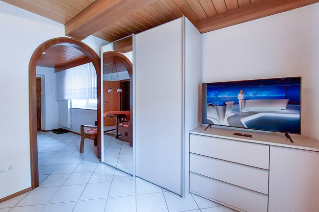 Schlafzimmer mit Doppelbett (180 x 200), Kleiderschrank & Fernseher